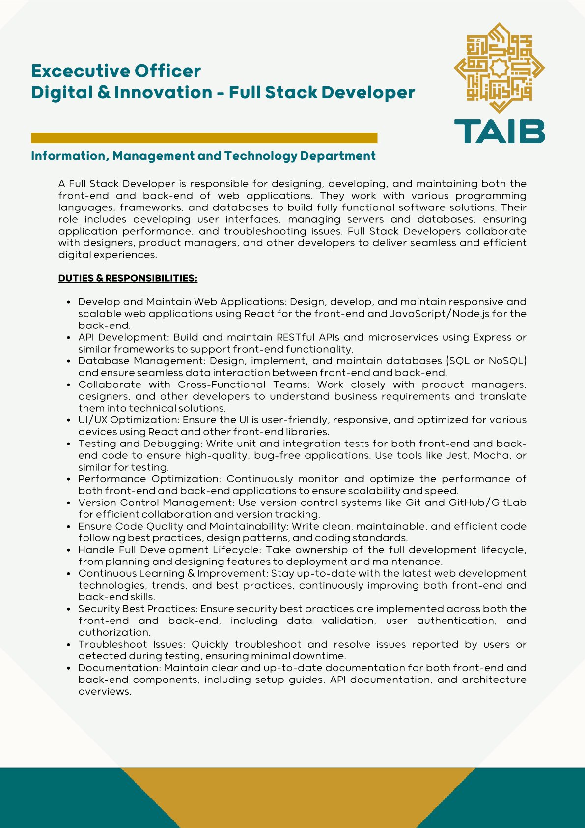 TAIB Schedule of Tariffs and Fees