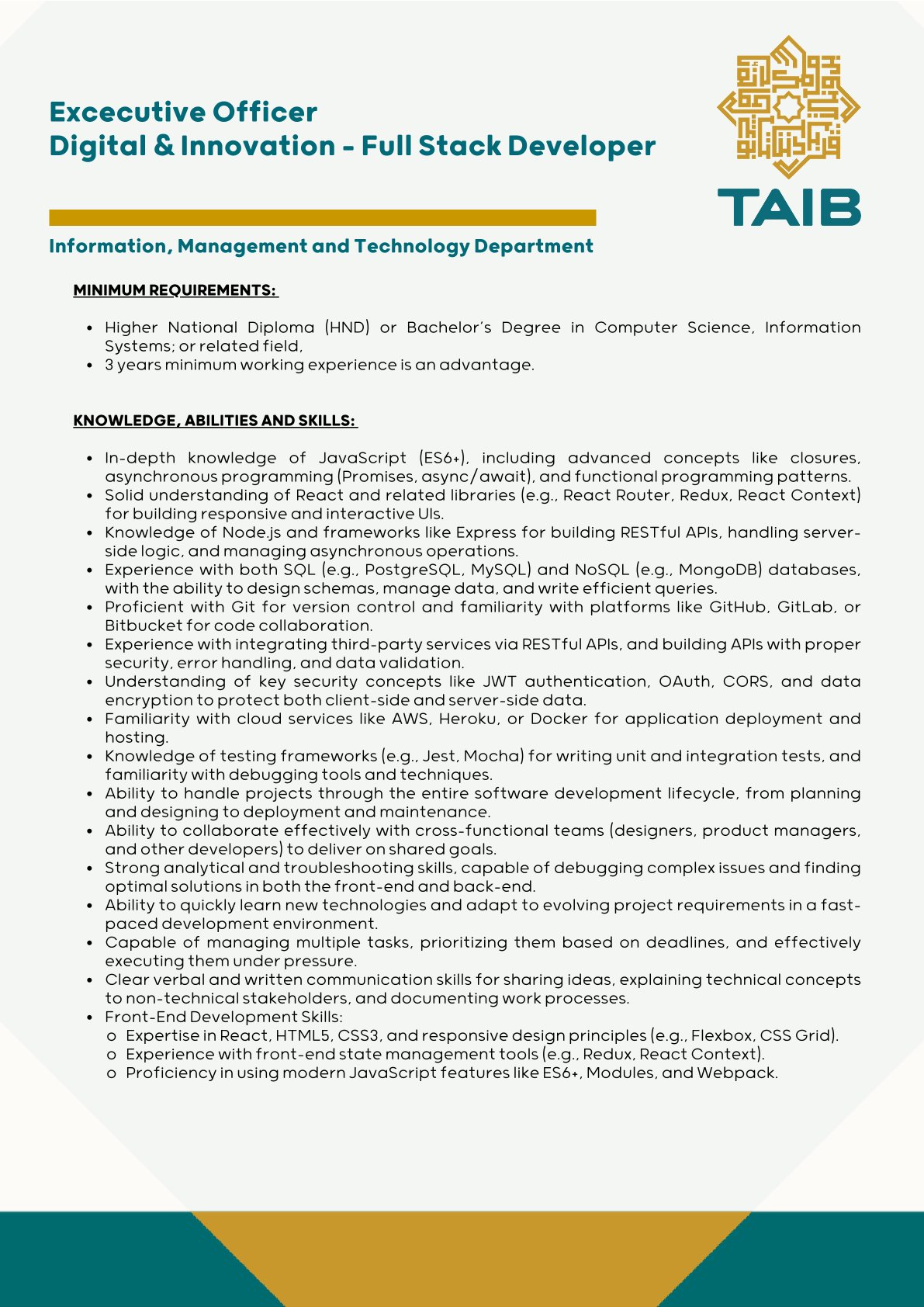 TAIB Deposit Certificate